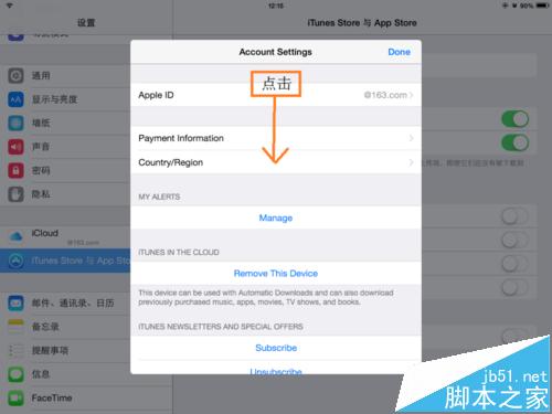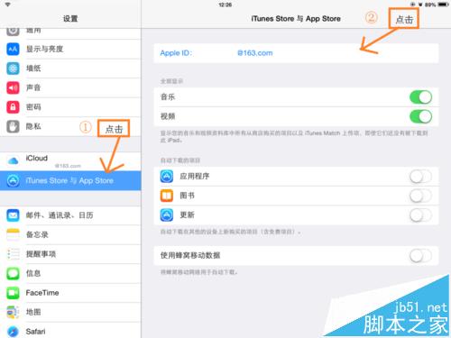 2、在左側邊欄先點擊【iTunes Store與App Store】,再點擊【Apple ID:】,