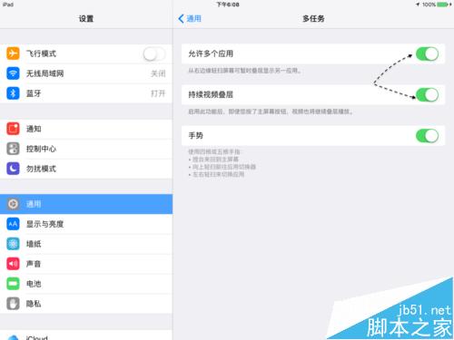 6、對于畫中畫的設置,它是位于【設置-通用-多任務】列表中,如圖所示