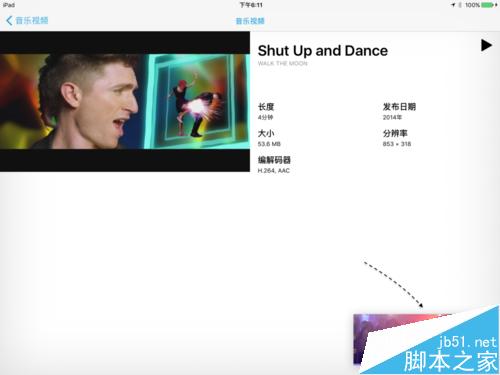 1、如下圖所示,在 iPad 上打開自帶的視頻應用,然后隨意在里面播放一個視頻影片。