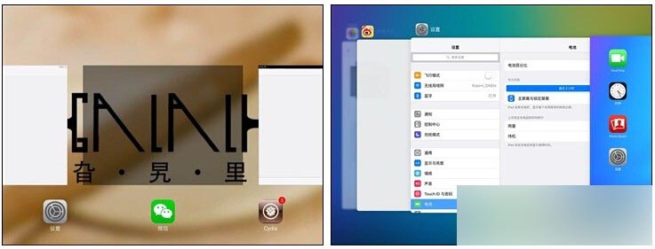 在本次的iOS9升級中改動最大的便是在蘋果系統中增加的快速切換任務功能,該功能其實我們早在安卓中也已經有發現過,不過安卓中是縱向滑動、iOS9為橫向滑動而已。開啟的手勢也很簡單,五指在屏幕上上滑或者雙擊Home鍵即可,與之前的iOS 8相比,不僅更美觀,整個屏幕的使用率也更高了一些,各任務之間的文字也會顯得更清晰,而這種疊加式的動畫效果相比之前的并列式,也會讓人覺得系統流暢了不少。(該功能除iPad Air2以外iPad Air、iPad mini 2、iPad mini 3也都可以實現)