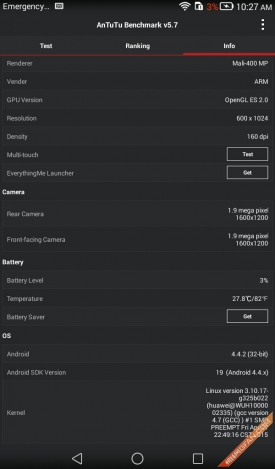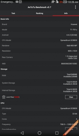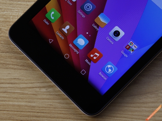硬件配置方面,榮耀暢玩平板采用了ARM架構的Cortex-A7四核處理芯片,主頻為1.2Ghz,同時搭配1GB RAM以及8GB ROM,從參數上來看,雖然配置沒有達到主流標準,但滿足日常應用問題應該不大,為了印證我們的猜測,我們也通過實際跑分來測試了一下這款產品。