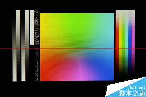 綜合測試中,暢玩平板note屏幕綠色范圍廣,紫色和紅色被壓縮,藍色顯示正常。色帶過渡測試中各種顏色完整顯示,但彩色向白色過渡明顯比向黑色過渡更自然。