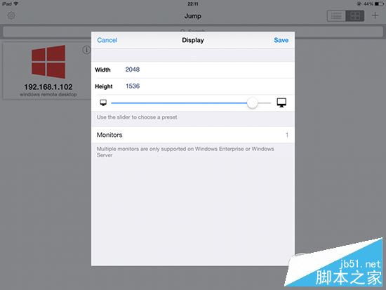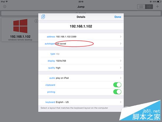3) ipad上安裝RDP(Remote Desktop Protocol)軟件,例如:Jump,Mocha RDP,RD Client。