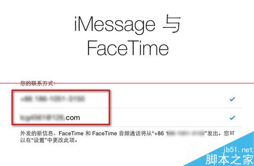 確認自己的Facetime和iMessage的聯系方式,因為恢復了備份,可以看到之前使用過的聯系地址。