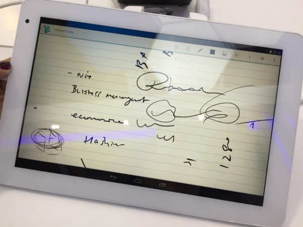 藍(lán)魔i10 note是一款配備有手寫(xiě)電容筆的10寸產(chǎn)品,從現(xiàn)場(chǎng)體驗(yàn)來(lái)看,手寫(xiě)效果流暢。藍(lán)魔Q7則是一款7寸通話平板,搭載高通芯片,采用Windows Phone 8.1系統(tǒng)。據(jù)了解,這應(yīng)該是藍(lán)魔的第一款高通芯片通話平板,屬于平板與手機(jī)兩者的跨界產(chǎn)品。