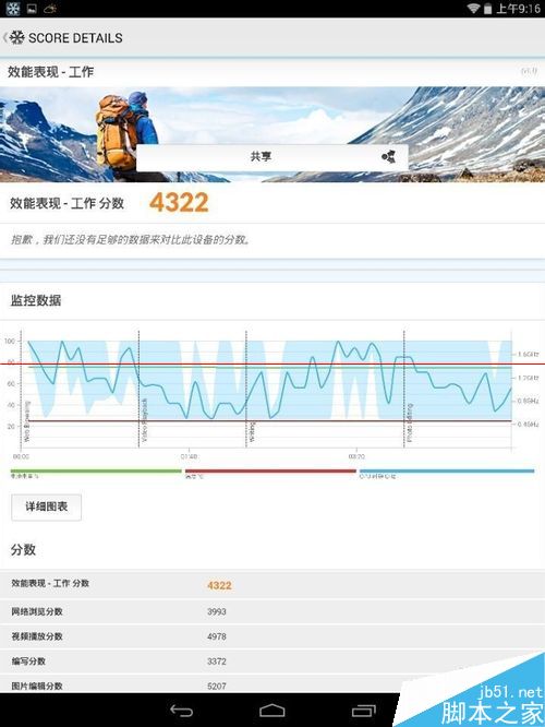 原道M9i測試成績為4322分,網絡瀏覽3993分,視頻播放4978分。從軟件的監控來看,在整個測試過程,溫度沒有明顯升高,電量沒有明顯減低,CPU的主頻變化較大,主頻最高達到1.8GHz。