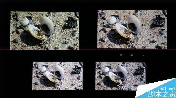 三原色表現,左上角的小米平板和左下角的MX4表現要遠優于另外兩部;右下角的Xshot的最大短板確實是在屏幕,連平板都贏不了;定價最低的愛國者X86的表現則要更差一點,色彩比較寡淡。