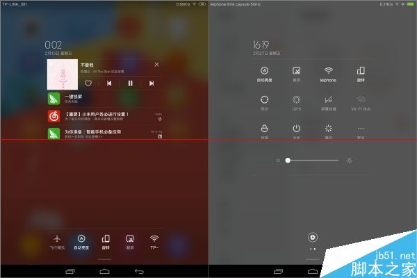 而讓人欣慰的是,移植的版本是MIUI V5,不像MIUI 6那樣被瘋狂精簡功能。通知欄依舊可以選擇單排排列并自定義按鈕位置。多任務界面可以加鎖,支持一鍵清理。