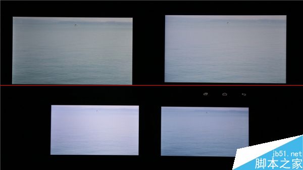100%亮度顯示全黑,除了MX4下方有較為明顯的漏光,其他3部的漏光控制都不錯。但右上角的愛國者X86的黑色壓不下去(而且偏紅),但略優于右下角的Xshot。