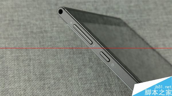 機身側邊的質感很像金屬,但其實整機只有背板是金屬。左側頂部的圓弧很漂亮地放下了3.5mm耳機接口,下方是拋光面的音量和電源按鍵,鍵程較短,手感一般。