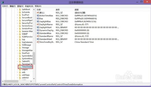 第二步、在注冊表左側按照下面的路徑打開:HKEY_LOCAL_MACHINE/SYSTEM/CurrentControlSet/Control/TimeZoneInformation