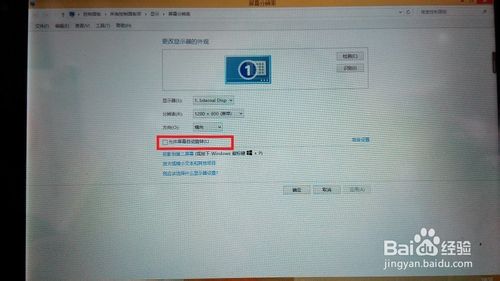 2、在屏幕分辨率設(shè)置界面中,找到“屏幕旋轉(zhuǎn)”,保證前邊的復(fù)選框處于未選擇狀態(tài),這樣屏幕就不會旋轉(zhuǎn)了。至于屏幕的橫向或豎向可以通過“屏幕方向”進行選擇設(shè)置。