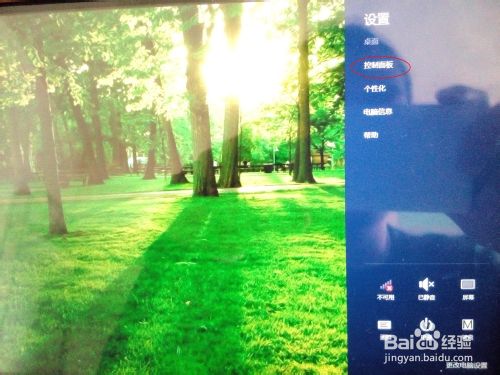 1、首先啟動(dòng)平板,進(jìn)入平板桌面。然后在界面右手邊向左滑動(dòng),將會(huì)出現(xiàn)如下圖,點(diǎn)擊“設(shè)置”,然后點(diǎn)擊“控制面板”。