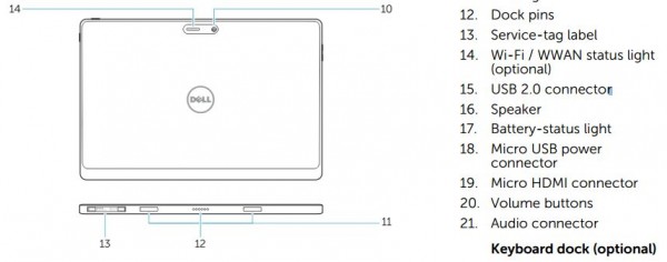 Venue 10 Pro配備了32瓦時的電池,提供了1個micro HDMI視頻輸出、2個USB 2.0和1個micro USB端口、1個microSD卡槽、以及6-pin的擴展塢接口。