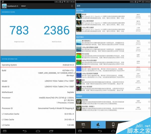 跑分方面, 娛樂(lè)兔34000分左右;Geekbench3 單核783分,多核2386分,表現(xiàn)介于驍龍800-驍龍801之間,但圓周率運(yùn)算表現(xiàn)不太正常,用了足足47.6秒,比聯(lián)發(fā)科的八核MT6592還弱;