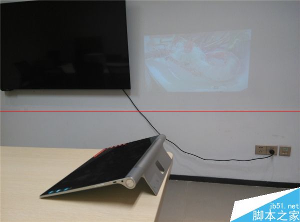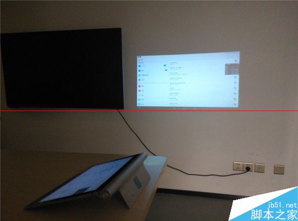 投影可以長(zhǎng)按通過(guò)側(cè)邊的投影按鈕,或系統(tǒng)控制中心的按鈕打開(kāi),系統(tǒng)能進(jìn)行自動(dòng)梯形校正,但仍需要手動(dòng)對(duì)焦。系統(tǒng)支持兩種投影模式:分屏和全屏模式,前者是單獨(dú)投影平板懸浮窗口中的內(nèi)容,而后者則是投影整個(gè)平板屏幕的內(nèi)容。