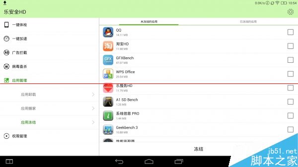系統(tǒng)自帶的安全管理應(yīng)用可以完成權(quán)限管理、廣告攔截、掃毒、加速等常用功能。