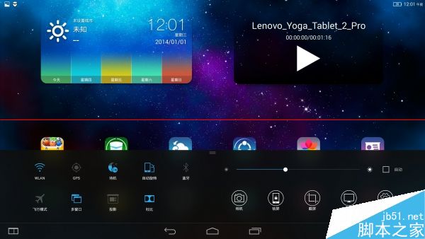YOGA搭載的是基于安卓4.4.2定制的樂(lè)OS,這個(gè)系統(tǒng)最早出現(xiàn)在2010年的樂(lè)UI,其大圓角矩形半卡通的深色圖標(biāo)和桌面插件是非常明顯的特征,在鼓吹扁平化和淡雅的大氛圍下,這套UI就顯得口味有點(diǎn)重了。