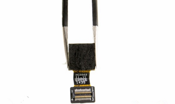 當插入第五個翹片之后,大部分屏幕邊框已經脫離雙面膠的束縛,但由于屏幕的屏線還與主板連接,所以我們只有斷開屏線插槽才可以大膽將屏幕與機身分離。
