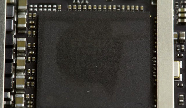 用于固定主板的拉膠共設計了五處,當我們一一將其取出,主板遍很輕松的拿出來了。接下來拍攝了主板上幾顆重點芯片的特寫。我們發現,該機的Z3580處理器是疊層封裝在爾必達2GB內存的下面,該工藝減少了內存與處理器之間的距離,加快了內存的響應速度