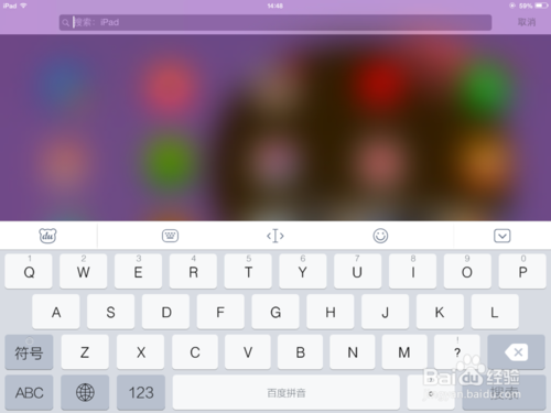 打開ipad mini ,點擊app store,進去后在搜索欄內打出“百度輸入法”,點擊搜索。