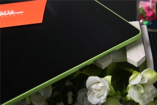 小米平板的電源鍵與音量調節在機身的右側(以觸摸按鍵所在一側為下),銀色的按鍵與機身配色加以區分方便用戶識別,Micro USB接口則位于機身底部。