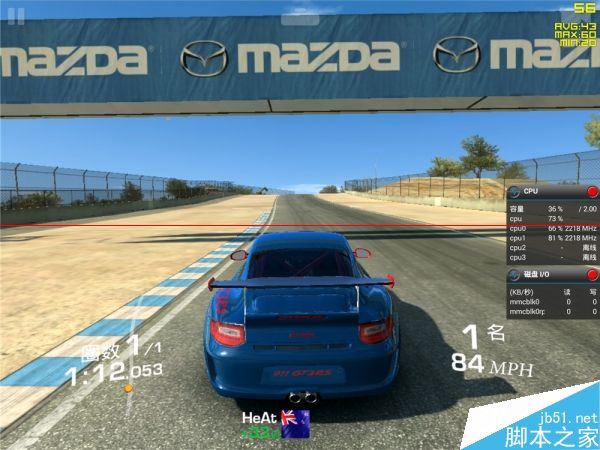 真實賽車也是特效全開,不過畫面清晰度不算高,平均幀數為43幀。