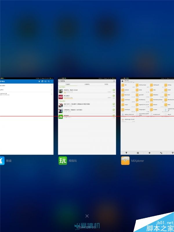 菜單鍵變成了任務管理按鈕,管理器中雙指縮放可以在縮略圖和圖標模式中切換。支持下拉鎖定,上劃清除任務。