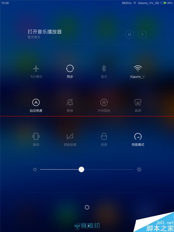 通知欄加入了實時的毛玻璃效果,左側是通知,右側是快捷開關,支持自定義排序功能,但只能改變排序不能隱藏開關。