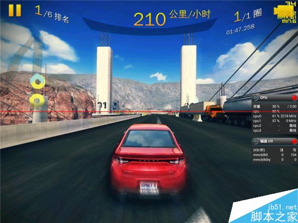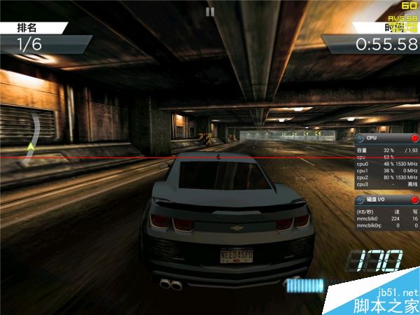 在安卓平臺上向來表現不佳的狂野飆車8上,可以特效齊全,以平均32幀的成績完成。