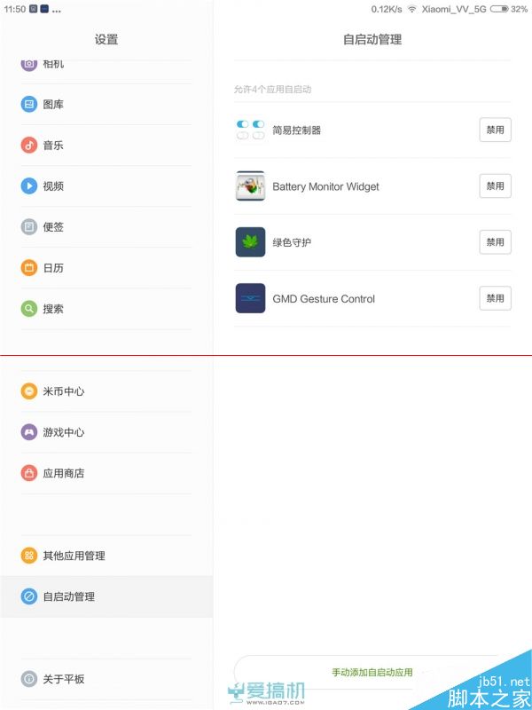 因為安全中心被取消,自啟動管理被放到設置頁。而瀏覽器、相機、音樂的自定義項被大幅精簡,郵箱對話模式等變化都和手機版MIUI6 一樣。
