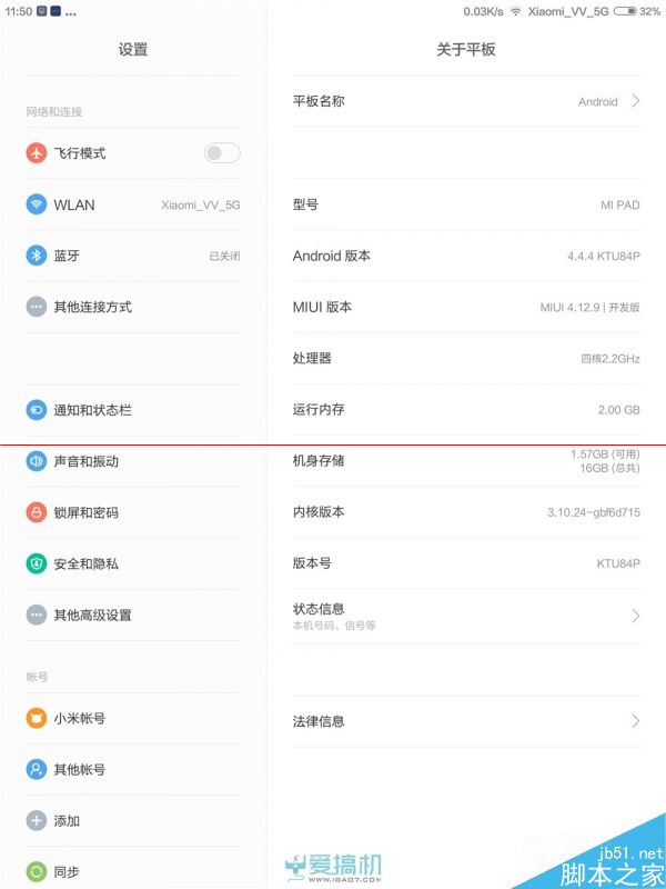 系統基于android 4.4.4,內核版本依舊是3.10.24。設置頁面是平板式的雙欄設計,分欄界面和高分辨率帶來的最大優勢是,一眼就能看完所有的項目,不用劃動屏幕了。