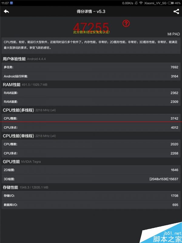跑分表現和 MIUI V5 相當,輕微的數字差異基本可以認為是測試誤差。