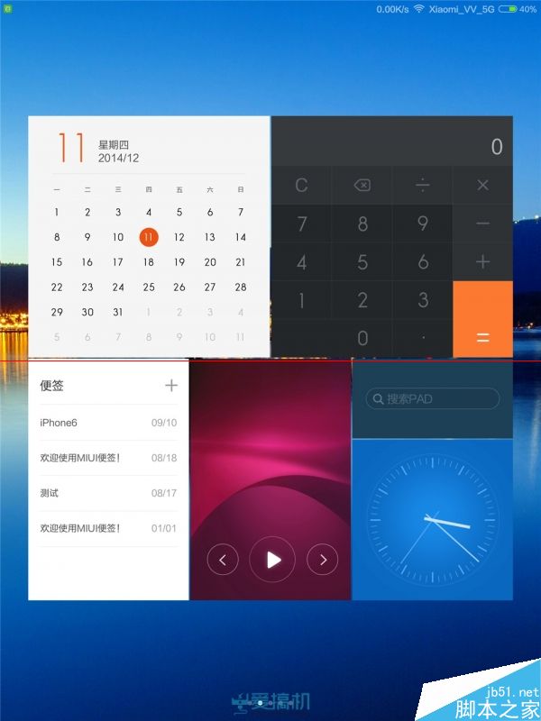 升級系統后,桌面的變化不大。還是MIUI 經典的單層菜單。桌面最左側是小部件中心,所有的桌面widget/插件都只能放在這里。