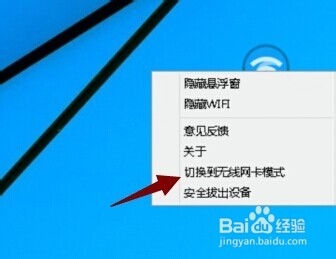 4、在小度WIFI程序的浮動圖標上點擊一下右鍵,然后再點擊【切換到無線網卡模式】