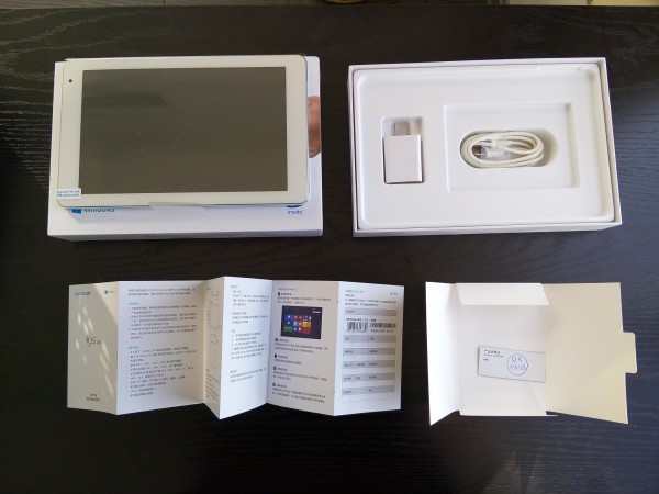 平板下方是USB充電頭和保修卡/說明書/以及USB數據線。
