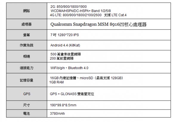 在性能方面該機(jī)搭載了高通驍龍64位410處理器,并承諾將會(huì)在未來升級(jí)至Android 5.0 Lollipop系統(tǒng)。目前該機(jī)已經(jīng)在臺(tái)灣地區(qū)發(fā)售,售價(jià)為$250,目前尚不清楚該平板是否會(huì)在其他國(guó)家和地區(qū)發(fā)售。
