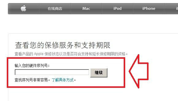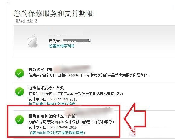 進入查看服務和支持期限頁面之后,輸入iPad Air 2序列號查詢即可,如下圖所示: