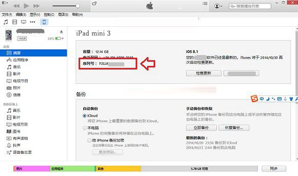 iTunes查看iPad mini 3序列號