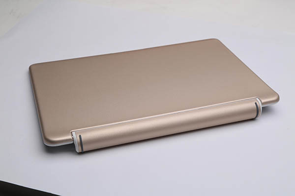 對比金色 iPhone 5s,這款金色藍(lán)牙鍵盤的顏色非常純正,電鍍的全鋁合金背面一體感十足。