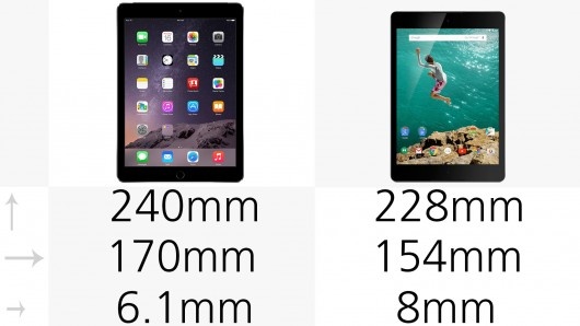 兩款產品都采用了相同的2048*1536分辨率設備,由于Nexus 9的尺寸要小點,所以像素密度上來看要更高一點。