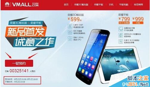 一鍵可以預(yù)約到華為榮耀3c暢玩版和榮耀平板。