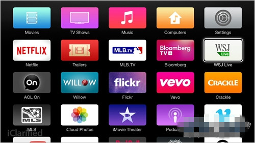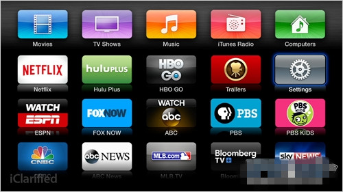 根據Apple TV最新測試版發布的相關新聞介紹,現在讓你們看看新測試版究竟更新了什么內容,首先從界面上來說,整體更加簡潔,與iPhone、iPad和iMac的風格靠攏,全體都是iOS8扁平化風格,請看下面全新界面和圖標: