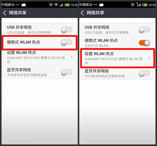 2,打開“便攜式WLAN熱點”后,“點擊設置WLAN熱點”如圖所示: