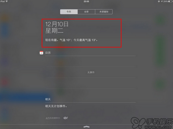 好了!這時只要用手指從屏幕頂端下劃打開通知欄,今日的天氣便一目了然了。