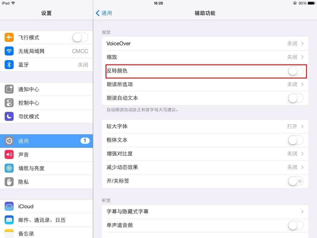 2.找到“反轉(zhuǎn)顏色”選項,點擊右側(cè)的按鈕將其打開