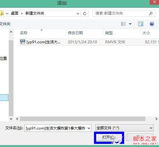 四、在新打開的文件選擇窗口中,找到我們要添加的 rmvb 視頻文件,選中視頻以后點擊“打開”按鈕即可,如圖所示