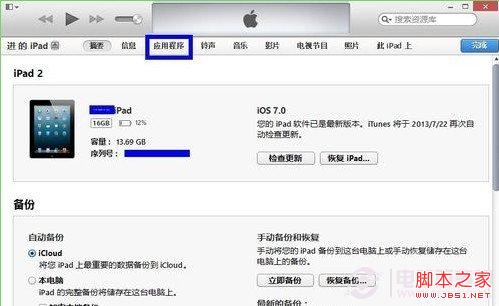 二、在 iPad 的管理界面中,點擊“應用程序”選項,如圖所示