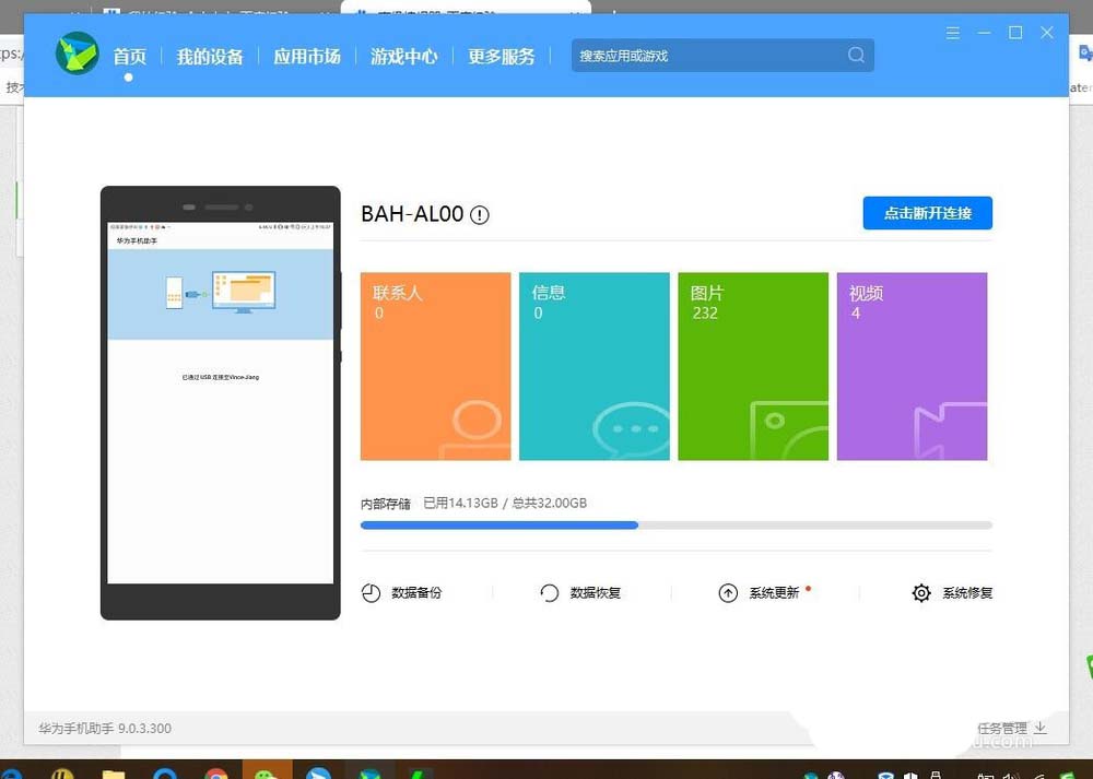 1、電腦端下載安裝“華為手機助手“客戶端,安裝完成后啟動應(yīng)用。