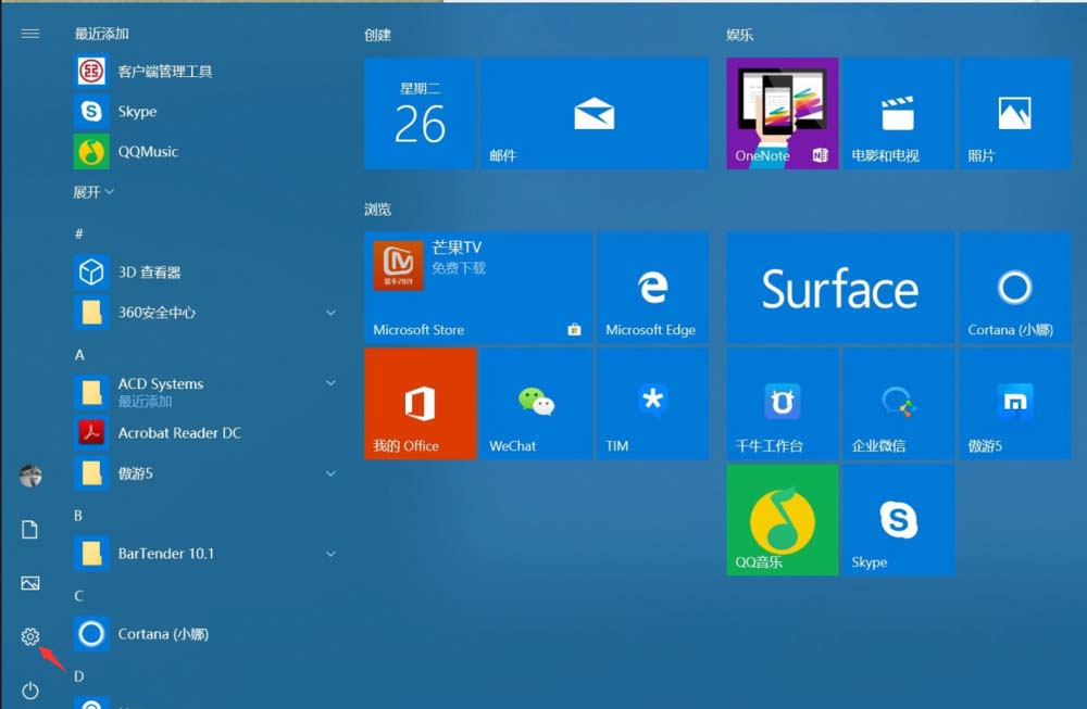 1、進入系統點齒輪設置,進入WINDOWS 設置